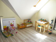 "Le Graffi'Ty (BEE300)", 3 -sobna kuća 70 m2 na 2 etaže. Komforno i lijepo uređena: dnevni boravak/blagovaona s stolom za blagovanje, TV-om, muzičkom linijom i DVD-om. Izlaz na terasu. Otvorena kuhinja (4 ploče za kuhanje, pećnica, perilica za suđe, 4 plamena za kuhanje, toster, kuhalo za vodu, mikrovalna pećnica, zamrzivač, el. aparat za kavu). Odv. WC. Gornji kat: s kosim stropom, otvorena galerija s 1 kaučem za 1 osobu (130 cm, dužina 190 cm). 1 soba s kosim stropom s 1 franc. krevetom (160 cm, dužina 200 cm). 1 soba s kosim stropom s 2 kreveta (90 cm, dužina 200 cm). Kada, odv. WC. El. grijanje. Terasa, prema jugu. Garnitura za sjedenje, vrtni roštilj (prijenosni). Na raspolaganju: perilica za rublje, sušilica, glačalo, visoka dječja stolica, dječji krevetić. Internet (wireless LAN [WLAN], besplatan). Dodatna informacija: kuća za nepušače. 1 kućni ljubimac / pas dozvoljen. Protupožarni alarm.- postrojenja