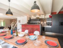 5 -sobna kuća 120 m2. Lijepo uređena: dnevni boravak/blagovaona s švedskom peći, stolom za blagovanje i TV-om (plosnatim TV ekranom). Izlaz u vrt. Otvorena kuhinja (pećnica, perilica za suđe, 3 Indukcione ploče, kuhalo za vodu, mikrovalna pećnica, el. aparat za kavu). Odv. WC. Gornji kat: (strme stepenice) 1 soba s 1 franc. krevetom (1 x 140 cm, dužina 190 cm). 1 soba s 2 kreveta (90 cm, dužina 190 cm). 2 x kada, odv. WC. 2. Gornji kat: (ljestve) 1 soba s 1 franc. krevetom (1 x 140 cm, dužina 190 cm) s 2 kreveta (90 cm, dužina 190 cm), umivaonikom. Vrt 400 m2. Garnitura za sjedenje, vrtni roštilj. Pogled na vrt. Na raspolaganju: perilica za rublje, sušilo za kosu. Internet (wireless LAN [WLAN], besplatan). Parking. Dodatna informacija: apartman prema dvorištu. 1 kućni ljubimac / pas dozvoljen. Protupožarni alarm.- postrojenja