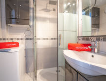 4 -sobna kuća u nizu 60 m2 na 2 etaže. Dnevni boravak/blagovaona s 1 kaučem za 2 osobe i TV-om. Izlaz na terasu. 1 soba s 1 franc. krevetom (140 cm, dužina 190 cm). Izlaz na terasu. Kuhinjska niša (4 ploče za kuhanje, pećnica, perilica za suđe, mikrovalna pećnica, zamrzivač, el. aparat za kavu). Izlaz na terasu. Tuš, odv. WC. Gornji kat: 1 soba s 1 franc. krevetom (140 cm, dužina 190 cm). 1 soba s 1 franc. krevetom (120 cm, dužina 185 cm), odv. WC-om. Terasa 25 m2, prema istoku terasa 20 m2, prema zapadu. Garnitura za sjedenje, vrtni roštilj. Na raspolaganju: perilica za rublje. Internet (wireless LAN [WLAN], uz doplatu). Parking. Dodatna informacija: protupožarni alarm.- Značajke smještaja