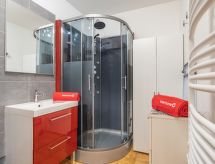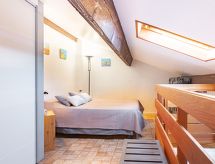 1 -sobna kuća u nizu 37 m2 na 2 etaže. Dnevni boravak/blagovaona s 1 kaučem za 2 osobe (140 cm, dužina 190 cm), TV-om (plosnatim TV ekranom), DVD-om i kućnim kinom. Izlaz na terasu. Kuhinjska niša (pećnica, perilica za suđe, 3 Indukcione ploče, zamrzivač, el. aparat za kavu, kombinirana mikrovalna pećnica). Tuš/WC. Gornji kat: (strme stepenice) s kosim stropom galerija s 1 franc. krevetom (140 cm, dužina 190 cm), klima uređajem. Terasa 12 m2, prema istoku. Garnitura za sjedenje, električni roštilj. Na raspolaganju: Internet (wireless LAN [WLAN], uz doplatu). Parking br. 23. Dodatna informacija: protupožarni alarm.- Značajke smještaja
