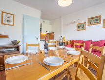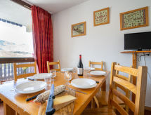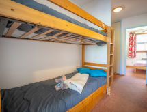 "Lac du Lou 506", 2 -sobni apartman 35 m2 na 5. katu, prema jugu. Svijetlo, jednostavno uređen: dnevni boravak/blagovaona s 1 krevetom na izvlačenje (2 osobe 2 x 90 cm, dužina 190 cm), TV-om (plosnatim TV ekranom), el. peći. Izlaz na balkon, prema jugu. 1 soba s 1 franc. krevetom (140 cm, dužina 190 cm), el. peći. Predsoblje s 1 x 2 kreveta na kat (80 cm, dužina 190 cm). Kuhinjska niša (4 ploče za kuhanje, pećnica, perilica za suđe, mikrovalna pećnica, el. aparat za kavu). Kada, odv. WC. Mali balkon 3 m2, prema jugu. Lijep pogled na planine. Na raspolaganju: Internet (wireless LAN [WLAN], uz doplatu). Dodatna informacija: najviše 1 kućni ljubimac / pas dozvoljen. Protupožarni alarm.- Značajke smještaja