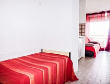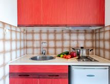 1 -sobni studio 22 m2 na 3. katu. Dnevni boravak/blagovaona s 1 kaučem za 2 osobe (120 cm, dužina 180 cm), TV-om. Predsoblje s 1 krevetom (80 cm, dužina 190 cm). Kuhinjska niša (2 ploče za kuhanje, mikrovalna pećnica). Tuš, odv. WC. Terasa 4 m2, prema sjeveroistoku. Garnitura za sjedenje. Na raspolaganju: Internet (wireless LAN [WLAN], besplatan). Parking. Dodatna informacija: najviše 1 kućni ljubimac / pas dozvoljen. Protupožarni alarm.- Značajke smještaja
