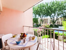 Residence "Le Lagon Bleu". U četvrti Richelieu, 300 m od mora, 300 m od plaže. Za zajedničko korištenje: bazen (11 x 5 m, 100- 200 cm dubok, sezonska dostupnost: 15.Jun. - 15.Sep.). U kompleksu: dizalo. Trgovački centar 500 m, restoran 300 m, pekara 120 m, pješčana plaža "Rochelongue" 260 m, vanjski bazen 3 km. Sportska lučica 3.3 km, golf teren (27 rupa) 500 m, tenis 3.2 km, jahanje konja 2.3 km. U blizini: Aqualand 300 m, Ile des Loisirs 800 m, Casino 2.1 km, Musée de l'Ephèbe 3.4 km.Interior