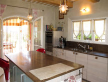 "Le Mas de la Roche (LML120)", 4 -sobna kuća 180 m2. Ukusno i stilski uređena: dnevni boravak/blagovaona s otvorenim kaminom, stolom za blagovanje, TV-om sa sat. prijemnikom i DVD-om. Izlaz na terasu. 1 soba s 1 franc. krevetom (160 cm), tušem/WC-om i klima uređajem. Izlaz na terasu. 1 bračna soba s tušem i klima uređajem. 1 soba s 1 franc. krevetom (160 cm), tušem i klima uređajem. Izlaz na terasu. Otvorena kuhinja (pećnica, perilica za suđe, 3 plamena za kuhanje, toster, kuhalo za vodu, mikrovalna pećnica, zamrzivač, el. aparat za kavu). Izlaz na terasu. 2 x odv. WC. Podno grijanje. 2 terase (djelomično natkrite). Garnitura za sjedenje, električni roštilj, ležaljke. Panoramski pogled. Na raspolaganju: perilica za rublje, sušilica, glačalo, visoka dječja stolica, dječji krevetić. Internet (wireless LAN [WLAN], besplatan).- postrojenja
