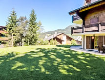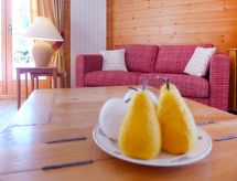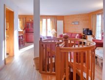 "Le Miclivier B2", 5 -sobni apartman na 2 nivoa 125 m2, u prizemlju. Prostrano i svijetlo, komforno uređen: dnevni boravak/blagovaona s otvorenim kaminom, stolom za blagovanje, TV-om, muzičkom linijom i DVD-om. Izlaz u vrt. 1 soba s 1 franc. krevetom (150 cm). Izlaz u vrt. 1 soba s 2 kreveta (90 cm). 1 soba s 1 franc. krevetom (160 cm), kadom/WC-om. Otvorena kuhinja (pećnica, perilica za suđe, 4 staklokeramičke ploče za kuhanje, toster, kuhalo za vodu, mikrovalna pećnica, zamrzivač, el. aparat za kavu, raclette roštilj, set za fondue (chinoise, sir)). Odv. WC, kada ili tuš. Donji kat: (kružne stepenice) veliki, 1 soba s 1 kaučem za 1 osobu i 1 x 2 kreveta na kat (90 cm). Tuš/WC. Vrt, prema jugu. Garnitura za sjedenje. Lijep panoramski pogled na planine. Na raspolaganju: sušilo za kosu. Internet (wireless LAN [WLAN], besplatan). Garaža br. 51.- Značajke smještaja