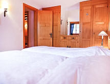 "Le Mont Blanc 2", 4 -sobni apartman 95 m2, u prizemlju, prema jugu. Svrsishodno i komforno uređen: dnevni boravak/blagovaona s TV-om i DVD-om. Izlaz u vrt. 1 soba s 2 kreveta. 1 soba s 2 kreveta. Mala kuhinja (4 ploče za kuhanje, pećnica, perilica za suđe). Kada/WC, tuš/WC. Donji kat: (strme stepenice) 1 soba s 2 kreveta i DVD-om. Terasa 10 m2, prema jugu, travnjak 10 m2. Garnitura za sjedenje. Lijep pogled na krajolik. Dodatna informacija: apartman za nepušače.- Značajke smještaja