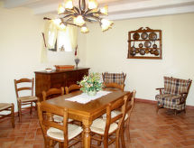 "Villa I Gelsomini", 5 -sobna kuća 160 m2 na 2 etaže. Objekt pogodan za 8. Prostrano i svijetlo, komforno i udobno uređena: dnevni boravak s 1 kaučem za 1 osobu, otvorenim kaminom i TV-om sa sat. prijemnikom. Izlaz u vrt. Kuhinja (pećnica, perilica za suđe, 4 plamena za kuhanje, toster, el. aparat za kavu) s stolom za blagovanje. Izlaz u vrt. Odv. WC. Gornji kat: 1 bračna soba s kadom/bidetom/WC-om. 1 bračna soba s tušem/bidetom/WC-om. 2 sobe, svaka soba s 2 kreveta. Tuš/bidet/WC. Grijanje na plin. Prirodni kameni pod. Terasa (natkrita), vrt. Garnitura za sjedenje, vrtni roštilj, ležaljke, lođa. Panoramski pogled na krajolik. Na raspolaganju: perilica za rublje, visoka dječja stolica, dječji krevetić do 2 godine. Parking (4 automobila). Dodatna informacija: prikladno za obitelji. Apartman za nepušače. Najviše 1 kućni ljubimac / pas dozvoljen. Vlastiti ulaz.- Značajke smještaja