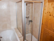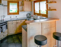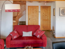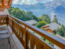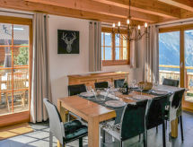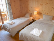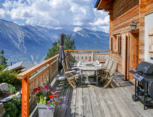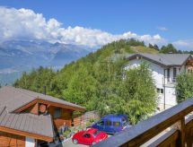 "Le Muveran V6", 4 -sobni chalet 175 m2 na 3 etaže. Prostrano i svijetlo, lijepo i ukusno uređen: predsoblje. Dnevni boravak/blagovaona s otvorenim kaminom, kabelskom TV i radiom. Izlaz na balkon, na terasu, prema sjeveru i prema zapadu. Otvorena kuhinja (pećnica, perilica za suđe, 4 staklokeramičke ploče za kuhanje, mikrovalna pećnica, el. aparat za kavu, Doze za mašinu za kavu (nespresso) uz doplatu, raclette roštilj, set za fondue (chinoise, sir)). Odv. WC. Grijanje. Donji kat: predsoblje. 1 soba s 1 franc. krevetom (160 cm, dužina 200 cm). Tuš/WC. Gornji kat: 1 soba s 2 kreveta (90 cm, dužina 200 cm). Izlaz na balkon, prema sjeveru. 1 soba s 1 franc. krevetom (160 cm, dužina 200 cm). Izlaz na balkon, prema sjeveru. Kada/tuš/WC. Balkon, prema sjeveru terasa 27 m2, prema zapadu, vrt, prema jugu. Garnitura za sjedenje, vrtni roštilj, ležaljke (4). Vrlo lijep pogled na planine. Na raspolaganju: perilica za rublje, sušilica, visoka dječja stolica, dječji krevetić, sušilo za kosu. Internet (wireless LAN [WLAN], besplatan). Parking (3 automobila). Dodatna informacija: apartman za nepušače. 1 kućni ljubimac / pas dozvoljen.- postrojenja