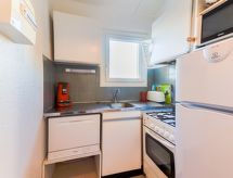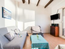 Residence "Le Mykonos II", na 4 kata. U četvrti Ile des Pêcheurs, 800 m od mora, 800 m od plaže, u slijepoj ulici. U kući: dizalo. Trgovina, trgovina živežnim namirnicama, restoran, pekara, cafe 50 m, pješice 15 minuta do centra, pješčana plaža "La Conque" 750 m, vanjski bazen 5.2 km. Sportska lučica 1.3 km, golf teren (27 rupa) 1 km, tenis 2.9 km, jahanje konja 4.5 km. U blizini: Falaises du Cap d'Agde 950 m, Aqualand 3.1 km, Ile des loisirs 3.2 km, Casino 2.2 km, Musée de l'Ephèbe 1.8 km, Arènes 2.2 km.Interior