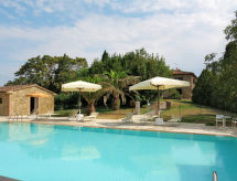 Agroturizam na 2 kata. 7 kuća u residenceu. 9 apartmana u residenceu. 5 km od centra mjesta Peccioli, 15 km od centra mjesta Lajatico, mirno mjesto na brežuljku, 50 km od mora. Za zajedničko korištenje: parcela 5 ha - drveće, livada, bazen (16 x 8 m, 140 cm dubok, sezonska dostupnost: 24.Apr. - 02.Oct.). Tuš/WC uz bazen, vanjski tuš, tenis (uz doplatu), vrtna garnitura za sjedenje, dječje igralište. U kući: stolni tenis, stolni nogomet, perilica za rublje (za zajedničko korištenje, uz doplatu). 900 m dugački prilaz autom (bijela cesta). Parking (natkriti) na parceli. Trgovina 2.5 km, supermarket 5 km, prirodno jezerce za kupanje 10 km. Jahanje konja 5 km, pješačke staze od kuće 2 km. U blizini: Volterra 30 km, Pisa 50 km. Pješačke staze: Mountain Bike Le Serre 8 km, Bosco di Ortaglia 8 km. Prodaja domaćih poljoprivrednih proizvoda.Interior