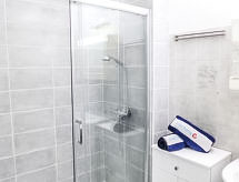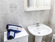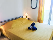 2 -sobni apartman 35 m2 na 2. katu, prema jugu. Dnevni boravak/blagovaona s 1 x 2 kreveta na kat (90 cm, dužina 190 cm), TV-om. 1 soba s 1 franc. krevetom (160 cm). Kuhinjska niša (pećnica, 4 staklokeramičke ploče za kuhanje, toster, kuhalo za vodu, el. aparat za kavu). Tuš, odv. WC. El. grijanje. Terasa 14 m2, prema jugu i prema istoku. Garnitura za sjedenje. Lijep pogled na more. Na raspolaganju: glačalo, sušilo za kosu. Internet (wireless LAN [WLAN], uz doplatu). Parking br. 224. Dodatna informacija: najviše 1 kućni ljubimac / pas dozvoljen. Protupožarni alarm.- Značajke smještaja