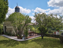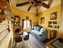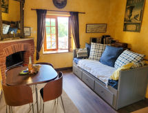 "Le Pigeonnier (CTU200)", 2 -sobna kuća 35 m2 na 2 etaže. Objekt pogodan za 2 odraslih + 1 dijete. Lijepo i udobno uređena: 1 soba s 1 franc. krevetom (140 cm, dužina 190 cm), tušem/WC-om. Izlaz u vrt. Gornji kat: (strme stepenice) dnevni boravak s 1 kaučem za 1 osobu (80 cm, dužina 200 cm), kutom za blagovanje, TV-om sa sat. prijemnikom i radiom. Izlaz na terasu. Kuhinjska niša (pećnica, perilica za suđe, 2 staklokeramičke ploče za kuhanje, mikrovalna pećnica, zamrzivač, el. aparat za kavu). El. grijanje. Terasa (natkrita). Garnitura za sjedenje, vrtni roštilj (prijenosni). Lijep pogled na krajolik. Na raspolaganju: visoka dječja stolica, dječji krevetić. Internet (wireless LAN [WLAN], besplatan). Dodatna informacija: protupožarni alarm.- postrojenja
