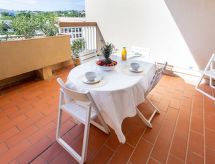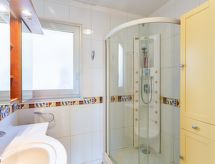 2 -sobni apartman 40 m2 na 1. katu. Svijetlo, komforno uređen: dnevni boravak s 1 kaučem za 2 osobe (160 cm, dužina 190 cm), TV-om (plosnatim TV ekranom). Izlaz na terasu. 1 soba s 1 bračnim krevetom (160 cm, dužina 200 cm). Izlaz na balkon. Otvorena kuhinja (pećnica, perilica za suđe, 4 Indukcione ploče, toster, kuhalo za vodu, el. aparat za kavu). Tuš/WC, hidromasažnim tušem. El. grijanje, bojlerom (200 litara). Terasa 20 m2, prema jugozapadu. Pogled na more. Na raspolaganju: perilica za rublje, glačalo, sušilo za kosu. Internet (wireless LAN [WLAN], besplatan). Dodatna informacija: apartman za nepušače, bez parkinga. TV samo FR. Protupožarni alarm, nema dizala. 830190010310R- Značajke smještaja