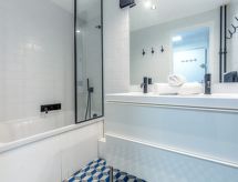 2 -sobni apartman 42 m2 na 6. katu, prema jugu. Prostrano, potpuno renoviran, vrlo svrsishodno i ukusno uređen: dnevni boravak/blagovaona s 1 kaučem za 2 osobe (140 cm, dužina 190 cm), TV-om. Izlaz na balkon, prema jugu. 1 soba s 2 kreveta (90 cm, dužina 190 cm). Izlaz na balkon. Predsoblje s 1 x 2 kreveta na kat (80 cm, dužina 190 cm). Otvorena kuhinja (pećnica, perilica za suđe, 4 staklokeramičke ploče za kuhanje, mikrovalna pećnica, el. aparat za kavu, Doze za mašinu za kavu (Nespresso) uklj, raclette roštilj, set za fondue (sir)). Kada/tuš, odv. WC. Pogled na planine i skijašku stazu. Na raspolaganju: Internet (wireless LAN [WLAN], besplatan). Dodatna informacija: apartman za nepušače. Protupožarni alarm.- Značajke smještaja