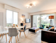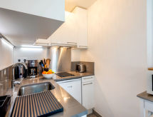 2 -sobni apartman 37 m2, u prizemlju. Komforno uređen: salon s 1 kaučem za 2 osobe (1 x 140 cm, dužina 190 cm), TV-om (plosnatim TV ekranom). Izlaz na balkon. 1 soba s 1 franc. krevetom (1 x 140 cm, dužina 200 cm). Kuhinja (mini pećnica, perilica za suđe, 2 staklokeramičke ploče za kuhanje, el. aparat za kavu, kombinirana mikrovalna pećnica). Tuš, odv. WC. El. grijanje. Mali balkon 6 m2. Na raspolaganju: perilica za rublje. Internet (wireless LAN [WLAN], uz doplatu). Garaža br. 6.- Značajke smještaja