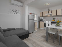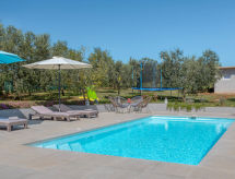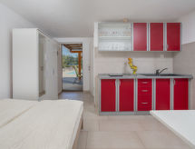 4 -sobna kuća 73 m2. Dnevno-spavaća soba 18 m2 s 1 franc. krevetom (160 cm, dužina 200 cm), stolom za blagovanje, kuhinjskim blokom i TV-om sa sat. prijemnikom (plosnatim TV ekranom), klima uređajem. Dnevni boravak/blagovaona 20 m2 s TV-om sa sat. prijemnikom (plosnatim TV ekranom), klima uređajem. 2 sobe, svaka soba s 1 franc. krevetom (160 cm, dužina 200 cm). Otvorena kuhinja (pećnica, perilica za suđe, 4 staklokeramičke ploče za kuhanje, mikrovalna pećnica, zamrzivač, el. aparat za kavu). 2 x tuš/WC. Ležaljke. Pogled na bazen. Na raspolaganju: glačalo, mrežice protiv komaraca, dječji krevetić, sušilo za kosu. Internet (wireless LAN [WLAN], besplatan). Jedna kuća s dnevno-spavaćom sobom, otvorenom kuhinjom. Druga kuća s dnevnim prostorom, otvorenom kuhinjom, 2 spavaće sobe.- postrojenja