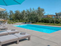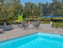 Lijepa obiteljska kuća "Leonardo", prikladna za djecu. U zaseoku Paolija 2.5 km od centra mjesta Novigrad, mirno, sunčano mjesto, 2.5 km od mora, 2.5 km od plaže. Za samostalno korištenje: parcela 1'000 m2 (ograđena), vrt - bilje i drveće, bazen pravokutni, grijani (8 x 4 m, 150 cm dubok, sezonska dostupnost: 01.Jan. - 31.Dec.) s unutarnjim stepenicama. Vanjski tuš, terasa (12 m2), vrtna garnitura za sjedenje, roštilj, dječje igralište (tobogan, ljuljačka). U kući: pristup internetu, trampolin, perilica za rublje. Prilaz autom do kuće (200 m bijela cesta). Parking (za 2 automobila) uz kuću na parceli. Supermarket 2.5 km, restoran 1 km, šljunčana plaža 2.5 km, stjenovita plaža 2.5 km. Pješačke staze od kuće 100 m, biciklistička staza 150 m. U blizini: aquapark 5 km. Dodatna informacija: prikladno za obitelji. Smještajna jedinica se sastoji od 2 zasebne kuće koje se iznajmljuju kao cjelina. Bazen grijani (uz doplatu). Potrebno je 7 dana unaprijed najaviti ukoliko se želi grijanje bazena. Grupe mladih nisu dozvoljene.Interior
