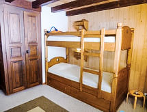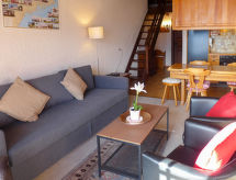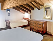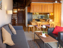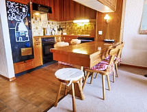 "Les Aiguilles d'Argent 10", 2 -sobni apartman 63 m2 na 3. katu, prema jugu. Djelomično spušten strop, svrsishodno i komforno uređen: dnevni boravak/blagovaona s otvorenim kaminom (samo za dekoraciju), stolom za blagovanje i TV-om (plosnatim TV ekranom). Izlaz na balkon. 1 soba s 1 x 2 kreveta na kat. Otvorena kuhinja (pećnica, perilica za suđe, 4 staklokeramičke ploče za kuhanje, raclette roštilj). Kada/bidet/WC. Gornji kat: (strme stepenice) s kosim stropom, otvorena galerija s 1 bračnim krevetom. Balkon 10 m2, prema jugu. Vrlo lijep pogled na planine i dolinu. Na raspolaganju: Internet (wireless LAN [WLAN], besplatan). Garaža br. 10.- postrojenja