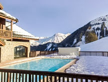 Lijepi residence "LES ALPAGES DU CORBIER", na 8 kata, godina izgradnje 2007. Ispod mjesta la station du Corbier, 700 m od centra mjesta, 50 m od skijališta. Za zajedničko korištenje: bazen pravokutni grijani (5 x 10 m, 150 cm dubok, sezonska dostupnost: 15.Dec. - 15.Apr. i 01.Jul. - 30.Aug. bazen je otvoren u vremenu: 10:30-19:00). Tuš/WC uz bazen. U kompleksu: restoran, bar, sala za doručak, pristup internetu, sauna, prostorija za fitnes, dizalo, spremište za skije, perilica za rublje, sušilica (za zajedničko korištenje, uz doplatu). Dostava kruha, doručak i polupansion na upit (uz doplatu). 50 m dugački strmi, uski prilaz autom. Zimi molimo ponijeti lance za snijeg. Javni parking 150 m. Trgovina 550 m, trgovina živežnim namirnicama 100 m, restoran, bar 600 m, autobusna postaja "St Jean de Maurienne" 700 m. Skilift, sjedežnica, skijaške žičare, skijaške staze 100 m, postaja ski busa 50 m, škola skijanja 600 m, dječji vrtić na snijegu 300 m, staza za sanjkanje 600 m. Dodatna informacija: besplatan ski bus. U slučaju povoljnih snježnih uvjeta pristup do kuće na skijama.Interior
