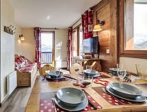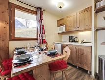 Lijepi residence "LES ALPAGES DU CORBIER", na 8 kata, godina izgradnje 2007. Ispod mjesta la station du Corbier, 700 m od centra mjesta, 50 m od skijališta. Za zajedničko korištenje: bazen pravokutni grijani (5 x 10 m, 150 cm dubok, sezonska dostupnost: 15.Dec. - 15.Apr. i 01.Jul. - 30.Aug. bazen je otvoren u vremenu: 10:30-19:00). Tuš/WC uz bazen. U kompleksu: restoran, bar, sala za doručak, pristup internetu, sauna, prostorija za fitnes, dizalo, spremište za skije, perilica za rublje, sušilica (za zajedničko korištenje, uz doplatu). Dostava kruha, doručak i polupansion na upit (uz doplatu). 50 m dugački strmi, uski prilaz autom. Zimi molimo ponijeti lance za snijeg. Javni parking 150 m. Trgovina 550 m, trgovina živežnim namirnicama 100 m, restoran, bar 600 m, autobusna postaja "St Jean de Maurienne" 700 m. Skilift, sjedežnica, skijaške žičare, skijaške staze 100 m, postaja ski busa 50 m, škola skijanja 600 m, dječji vrtić na snijegu 300 m, staza za sanjkanje 600 m. Dodatna informacija: besplatan ski bus. U slučaju povoljnih snježnih uvjeta pristup do kuće na skijama.Interior