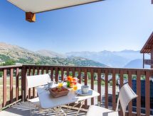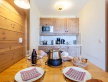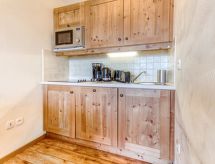 2 -sobni apartman 30 m2 na 1. katu, prema sjeveru. Svrsishodno i komforno uređen: dnevni boravak/blagovaona s 1 krevetom na izvlačenje (2 osobe 2 x 80 cm, dužina 190 cm), TV-om (plosnatim TV ekranom). Izlaz na balkon, prema sjeveru. 1 soba s 1 franc. krevetom (1 x 140 cm, dužina 190 cm), TV-om (plosnatim TV ekranom). Otvorena kuhinja (perilica za suđe, 4 staklokeramičke ploče za kuhanje, toster, kuhalo za vodu, el. aparat za kavu, raclette roštilj, kombinirana mikrovalna pećnica, set za fondue (sir)). Kada, odv. WC. El. grijanje. Parketni pod. Balkon 4 m2, prema sjeveru. Balkonski namještaj. Pogled na planine i dolinu. Na raspolaganju: sušilo za kosu. Internet (wireless LAN [WLAN], uz doplatu). Dodatna informacija: apartman za nepušače. Najviše 1 kućni ljubimac / pas dozvoljen. Protupožarni alarm.- Značajke smještaja