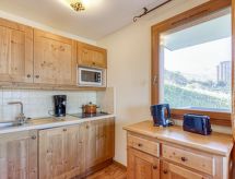 Lijepi residence "LES ALPAGES DU CORBIER", na 8 kata, godina izgradnje 2007. Ispod mjesta la station du Corbier, 700 m od centra mjesta, 50 m od skijališta. Za zajedničko korištenje: bazen pravokutni grijani (5 x 10 m, 150 cm dubok, sezonska dostupnost: 15.Dec. - 15.Apr. i 01.Jul. - 30.Aug. bazen je otvoren u vremenu: 10:30-19:00). Tuš/WC uz bazen. U kompleksu: restoran, bar, sala za doručak, pristup internetu, sauna, prostorija za fitnes, dizalo, spremište za skije, perilica za rublje, sušilica (za zajedničko korištenje, uz doplatu). Dostava kruha, doručak i polupansion na upit (uz doplatu). 50 m dugački strmi, uski prilaz autom. Zimi molimo ponijeti lance za snijeg. Javni parking 150 m. Trgovina 550 m, trgovina živežnim namirnicama 100 m, restoran, bar 600 m, autobusna postaja "St Jean de Maurienne" 700 m. Skilift, sjedežnica, skijaške žičare, skijaške staze 100 m, postaja ski busa 50 m, škola skijanja 600 m, dječji vrtić na snijegu 300 m, staza za sanjkanje 600 m. Dodatna informacija: besplatan ski bus. U slučaju povoljnih snježnih uvjeta pristup do kuće na skijama.Interior