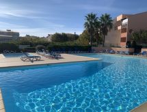 Veliki, ugodni residence "Les Ambassades du Soleil", na 5 kata, okružen drvećem. Sunčano mjesto, 250 m od mora. Za zajedničko korištenje: vrt (ograđen), bazen zaštićen (14 x 10 m, 100- 225 cm dubok, sezonska dostupnost: 26.May. - 02.Oct.) s unutarnjim stepenicama. Bazen za djecu, vanjski tuš. Parking na parceli, javni parking na ulici. Trgovina, trgovina živežnim namirnicama, restoran 200 m. Sportska lučica 800 m, golf teren (27 rupa) 3 km. Dodatna informacija: Fotografija prikazuje samo tipičan primjer kuće.Interior