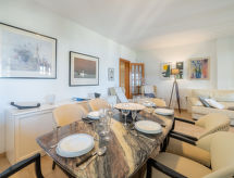"Les Ancores", 5 -sobna polovica dvojne kuće 200 m2, u niskom prizemlju. Objekt pogodan za 7. Prostrano i svijetlo, vrlo lijepo i udobno uređena: veliki dnevni boravak/blagovaona s panoramskim prozorom s otvorenim kaminom (samo za dekoraciju), stolom za blagovanje, TV-om, plosnatim TV ekranom, klima uređajem i grijanjem na topli zrak. Izlaz na mjesto za sjedenje u vrtu. 1 velika bračna soba s panoramskim prozorom s 1 bračnim krevetom. 2 velike bračne sobe s panoramskim prozorom, svaka soba s 2 kreveta (90 cm, dužina 180 cm). 1 soba s panoramskim prozorom s 1 krevetom (90 cm). Kuhinja/dn. boravak (pećnica, perilica za suđe, 3 staklokeramičke ploče za kuhanje, mikrovalna pećnica, zamrzivač, el. aparat za kavu) s stolom za blagovanje. Izlaz na mjesto za sjedenje u vrtu. Kada/WC, tuš/WC. Velika vrtna terasa, travnjak. Garnitura za sjedenje, ležaljke, lođa. Prekrasan panoramski pogled na more, planine i zaljev. Na raspolaganju: perilica za rublje, glačalo, visoka dječja stolica, dječji krevetić, sušilo za kosu. Internet (wireless LAN [WLAN], besplatan). Prikladno za obitelji. 318472017- Aktivnosti u blizini
