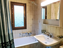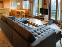 4 -sobni apartman 120 m2 na 2 etaže na 1. katu, prema jugu. Dnevni boravak/blagovaona s otvorenim kaminom i TV-om. 1 soba s 2 kreveta. 1 bračna soba s 1 franc. krevetom (140 cm). Dnevni boravak. Kuhinjska niša (3 ploče za kuhanje, pećnica, perilica za suđe, raclette roštilj, set za fondue (sir)). Kada/WC, tuš/WC. Gornji kat: (strme stepenice) niša za spavanje s 2 kreveta. Balkon, prema jugu. Na raspolaganju: perilica za rublje, sušilica. Internet (wireless LAN [WLAN], besplatan). Parking br. 66 (natkrit).- Aktivnosti u blizini