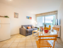 Vrlo lijepi residence "Les Belles Plages". U četvrti La Motte du Couchant, 2 km od centra mjesta, 70 m od mora, direktan pristup na plažu. Travnjak i cvijeće. Za zajedničko korištenje: bazen (20 x 8 m, 90- 200 cm dubok, sezonska dostupnost: 03.Jul. - 28.Aug.). U kompleksu: dizalo. Javni parking uz doplatu. Trgovački centar, restoran 400 m, autobusna postaja 300 m, željeznička postaja "Montpellier" 25 km, pješčana plaža 20 m, natkriveni bazen 3.3 km, termalno kupalište "Thalasso Spa" 2.5 km. Sportska lučica 1.3 km, golf teren (18 rupa) 3.6 km, škola jedrenja 1 km, tenis 3.3 km, jahanje konja 1.4 km. U blizini: Le Seaquarium du Grau Du Roi 10 km, Les Remparts d'Aigues Mortes 12 km, Les Saintes Maries de la Mer 40 km. Vlasnik ne prihvaća grupe mladih. Dodatna informacija: zračna luka u blizini 20 km od kuće. Mogućnost rezerviranja dodatnih smještajnih jedinica.Interior