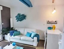Capbreton 1 km od mjesta Hossegor: Lijepi, komforni residence "Les Berges Landaises", na 2 kata, godina izgradnje 2010. 500 m od centra mjesta Hossegor, na rubu mjesta, 1 km od centra mjesta Capbreton, mirno mjesto, 2 km od mora, 300 m od jezera, 2 km od plaže, 300 m od kanala, 50 m od potoka, u slijepoj ulici. Travnjak i drveće. U kući: dizalo. Trgovina 300 m, trgovina živežnim namirnicama, supermarket 250 m, restoran 300 m, autobusna postaja 200 m. Golf teren (18 rupa) 100 m. Grupe mladih samo na upit. Dodatna informacija: U istoj kući iznajmljuju se dodatni apartmani.Interior