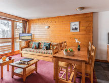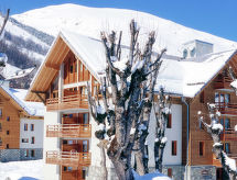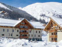 "Les Chalets du Galibier", 2 -sobni apartman 32 m2. Udobno i s puno drva uređen: dnevno-spavaća soba s 2 ležaja i TV-om. 1 soba s 2 kreveta. Kuhinjska niša (perilica za suđe, 4 staklokeramičke ploče za kuhanje, mikrovalna pećnica). Kada/WC. Grijanje. Balkon ili mala terasa. Na raspolaganju: Internet (wireless LAN [WLAN], uz doplatu). Dodatna informacija: najviše 2 kućna ljubimca / psa dozvoljena. Protupožarni alarm.- Značajke smještaja
