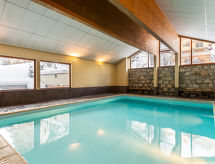 Ugodni, rustikalni residence "Les Chalets du Galibier". 10 kuća u residenceu. 800 m od centra mjesta Valloire, 200 m od skijališta. Za zajedničko korištenje: 2 bazena, unutarnji bazen grijani (6 x 8 m, sezonska dostupnost: 15.Dec. - 10.Apr. bazen je otvoren u vremenu: 10:00-19:30). Tuš/WC uz bazen. U kompleksu: recepcija, prostorija za druženje sauna (uz doplatu), parna kupelj (uz doplatu). Biljar, dizalo, spremište za skije, perilica za rublje (uz doplatu), sušilica (uz doplatu). Dostava kruha (uz doplatu). Parking (uz doplatu). Parking/garaža samo za mala - srednja vozila. Dimenzija: visina 190 cm. Trgovina 800 m. Skijaške staze 200 m, postaja ski busa 10 m. Poznata skijališta u blizini: Valmeinier 12 km, Saint-Jean-de-Maurienne 30 km. Dodatna informacija: radno vrijeme recepcije 17:00-20:00 sati. Dodatna informacija: Fotografija prikazuje samo tipičan primjer kuće. Objekti se mogu razlikovati po stambenom prostoru, podjeli prostorija, opremi i namještaju.Interior