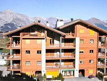 "Les Chouettes 23", 4 -sobni apartman 100 m2 na 2. katu. Komforno uređen: veliki dnevni boravak/blagovaona s kutom za blagovanje, kabelskom TV i muzičkom linijom. Izlaz na terasu. 1 soba s 1 bračnim krevetom (2 x 90 cm, dužina 200 cm), tušem/WC-om. 1 soba s 1 franc. krevetom (160 cm, dužina 200 cm). 1 soba s 1 franc. krevetom (180 cm, dužina 200 cm). Otvorena kuhinja (pećnica, perilica za suđe, raclette roštilj, kombinirana mikrovalna pećnica, set za fondue (chinoise, sir)). Kada, odv. WC. Terasa, prema sjeveru terasa, prema jugu. Vrlo lijep pogled na planine i dolinu. Na raspolaganju: Internet (wireless LAN [WLAN], besplatan). Garaža br. 4, visina 210 cm, širina 230 cm. Dodatna informacija: apartman za nepušače.- Značajke smještaja