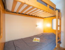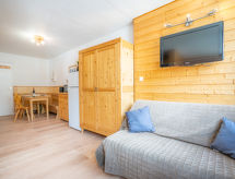 "Cime de Caron 2701", 1 -sobni apartman 25 m2 na 7. katu, prema sjeveru. Renoviran godine 2022, vrlo svrsishodno i komforno uređen: dnevni boravak/blagovaona s 1 kaučem za 1 osobu (140 cm, dužina 190 cm), TV-om (plosnatim TV ekranom), muzičkom linijom i el. peći. Kabina s 1 x 2 kreveta na kat (90 cm, dužina 190 cm). Kuhinjska niša (2 ploče za kuhanje, pećnica, perilica za suđe, kuhalo za vodu, mikrovalna pećnica, el. aparat za kavu). Kada/WC. El. grijanje. Na raspolaganju: Internet (wireless LAN [WLAN], uz doplatu). Dodatna informacija: protupožarni alarm.- postrojenja