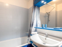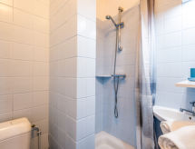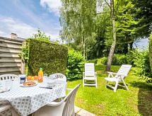 3 -sobni apartman 44 m2 na 2 etaže. Potpuno renoviran godine 2020, svrsishodno i lijepo uređen: dnevni boravak/blagovaona s 1 kaučem za 2 osobe (1 x 195 cm, dužina 152 cm), TV-om i plosnatim TV ekranom. Otvorena kuhinja (mini pećnica, pećnica, perilica za suđe, 3 staklokeramičke ploče za kuhanje, gril, el. aparat za kavu, kombinirana mikrovalna pećnica). Tuš/WC. Gornji kat: 1 soba s 1 franc. krevetom (1 x 140 cm, dužina 190 cm). 1 soba s 2 kreveta (80 cm, dužina 190 cm). Kada/WC. El. grijanje. Mala terasa 12 m2. Pogled na golf igralište. Na raspolaganju: sušilo za kosu. Parking br. 74. Dodatna informacija: protupožarni alarm.- Značajke smještaja