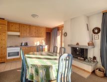 3 -sobni apartman 58 m2 na 2. katu. Komforno uređen: dnevni boravak/blagovaona s otvorenim kaminom i kabelskom TV. Izlaz na balkon. 1 soba s 2 kreveta (90 cm, dužina 190 cm). 1 soba s 1 krevetom (90 cm, dužina 190 cm), 1 x 2 kreveta na kat (90 cm, dužina 190 cm). Otvorena kuhinja (pećnica, perilica za suđe, 4 staklokeramičke ploče za kuhanje, el. aparat za kavu, Doze za mašinu za kavu (Nespresso) uz doplatu). Kada/WC, tuš/WC. Veliki balkon, prema jugu. Balkonski namještaj. Lijep pogled na planine. Na raspolaganju: Internet (wireless LAN [WLAN], besplatan). Dodatna informacija: apartman za nepušače.- Značajke smještaja