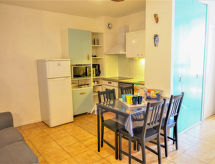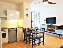 Residence "Les Dromadaires", na 3 kata, godina izgradnje 1975. U centru mjesta port de Gruissan, centralno, prometno, sunčano mjesto. Za zajedničko korištenje: bazen (15 x 7 m, 135- 250 cm dubok, sezonska dostupnost: 15.Jul. - 15.Sep.) s unutarnjim stepenicama. Parking. Trgovina 20 m, supermarket 1.5 km, restoran 20 m, pekara 100 m, pješačka zona 20 m, pješčana plaža "du Grazel" 950 m. Sportska lučica 20 m, škola jedrenja na dasci 2.5 km. U blizini: Réserve Africaine de Sigean 29 km, Cité de Carcassonne 60 km. Ključeve ćete preuzeti u turističkoj agenciji Interhome u mjestu Narbonne Plage, 10 km.Interior