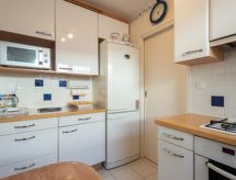 4 -sobna polovica dvojne kuće 77 m2 na 2 etaže. Dnevni boravak/blagovaona s TV-om (plosnatim TV ekranom), radiom. Izlaz na terasu. Kuhinja (4 ploče za kuhanje, pećnica, perilica za suđe, mikrovalna pećnica, zamrzivač). Odv. WC. Gornji kat: 2 sobe, svaka soba s 1 franc. krevetom (140 cm). 1 soba s 1 krevetom (100 cm). Tuš, odv. WC. Grijanje na plin. Mala terasa 10 m2, vrtna terasa. Garnitura za sjedenje, ležaljke (2). Na raspolaganju: perilica za rublje, sušilica. Internet (wireless LAN [WLAN], uz doplatu). Parking br. 7. Dodatna informacija: TV samo FR. Protupožarni alarm.- postrojenja