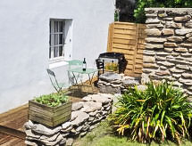 3 -sobna kuća u nizu 85 m2 na 2 etaže. Djelomično renovirana godine 2017, lijepo uređena: dnevni boravak/blagovaona s TV-om (plosnatim TV ekranom), muzičkom linijom. Izlaz u vrt. Otvorena kuhinja (pećnica, perilica za suđe, 4 Indukcione ploče, mikrovalna pećnica, zamrzivač, el. aparat za kavu) s stolom za blagovanje. Gornji kat: 1 soba s 1 x 2 kreveta na kat (90 cm, dužina 190 cm), 1 franc. krevetom (1 x 140 cm, dužina 190 cm). 1 soba s 1 franc. krevetom (1 x 160 cm, dužina 190 cm). Kada/WC. El. grijanje. Mali vrt. Garnitura za sjedenje, ležaljke (2). Pogled na vrt. Na raspolaganju: perilica za rublje, glačalo, visoka dječja stolica, dječji krevetić do 2 godine. Internet (wireless LAN [WLAN], besplatan). Dodatna informacija: najviše 2 kućna ljubimca / psa dozvoljena. Protupožarni alarm.- postrojenja