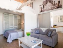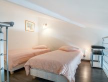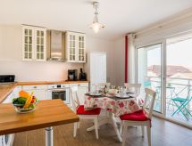 3 -sobni apartman 55 m2 na 2 etaže na 2. katu. Moderno i ukusno uređen: dnevni boravak/blagovaona s TV-om (plosnatim TV ekranom), klima uređajem. Izlaz na balkon. Otvorena prolazna soba s kliznim vratima s 1 franc. krevetom (1 x 140 cm, dužina 190 cm). Otvorena kuhinja (perilica za suđe, 3 Indukcione ploče, toster, kuhalo za vodu, mikrovalna pećnica, zamrzivač, el. aparat za kavu, Doze za mašinu za kavu (filtre+l'or philips) uz doplatu). Gornji kat: 1 otvorena soba s kosim stropom, visina stropa 170 - 110 cm s 2 kreveta (90 cm, dužina 190 cm). Tuš/WC. El. grijanje. Na raspolaganju: Internet (wireless LAN [WLAN], uz doplatu). Parking (1 automobil). Dodatna informacija: apartman prema cesti.- Značajke smještaja