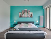 Quiberon: Residence "Les Gemeaux", na 4 kata. Na rubu mjesta, 1 km od centra mjesta, 50 m od mora, 300 m od plaže. U kući: dizalo, spremište za bicikle. Trgovina 1 km, trgovina živežnim namirnicama 1 km, restoran 1 km, bar 1 km, željeznička postaja "Auray" 29 km, pješčana plaža 250 m, natkriveni bazen 150 m, termalno kupalište "Thalassothérapie de Quiberon" 600 m, uvala za kupanje 250 m. Marina 1 km, golf teren (9 rupa) 1 km. U blizini: Casino de Quiberon 200 m, Thalassothérapie 600 m, Les Alignements de Carnac 18 km, Auray 30 km, Vannes 47 km, Belle-Ile en mer.Interior