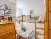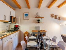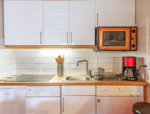 3 -sobni apartman 35 m2 na 1. katu. Lijepo uređen: dnevni boravak/blagovaona s TV-om. Izlaz na balkon. 1 soba s 1 franc. krevetom (140 cm, dužina 190 cm). Kabina s 1 x 2 kreveta na kat (80 cm, dužina 190 cm). Otvorena kuhinja (4 ploče za kuhanje, pećnica, perilica za suđe, toster, kuhalo za vodu, el. aparat za kavu, kombinirana mikrovalna pećnica). Kada/WC. El. grijanje. Balkon, prema zapadu. Balkonski namještaj. Na raspolaganju: perilica za rublje. Internet (wireless LAN [WLAN], besplatan). Garaža br. 22. Dodatna informacija: apartman za nepušače. TV samo FR. Nema dizala.- Značajke smještaja