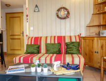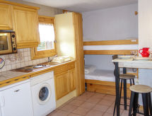 "Jardins Alpins 1", 2 -sobni apartman 30 m2, u prizemlju. Predsoblje. Dnevni boravak/blagovaona s TV-om, plosnatim TV ekranom i CD-om. 1 soba s 1 franc. krevetom (140 cm). Dnevno-spavaća soba s 1 x 2 kreveta na kat (80 cm). Kuhinjska niša (4 ploče za kuhanje, mini pećnica, pećnica, toster, kuhalo za vodu, el. aparat za kavu, raclette roštilj). Tuš/WC. El. grijanje. Prema zapadu, mala terasa. Na raspolaganju: perilica za rublje, glačalo, sušilo za kosu. Internet (wireless LAN [WLAN], uz doplatu). Garaža br. 44. Dodatna informacija: apartman za nepušače. TV samo FR. Protupožarni alarm.- Značajke smještaja