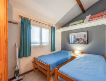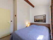 3 -sobni apartman 35 m2 na 2 etaže, u prizemlju, prema jugozapadu. Djelomično renoviran godine 2020, lijepo uređen: dnevni boravak s TV-om (plosnatim TV ekranom), CD-om, DVD-om i ventilatorom. Izlaz na terasu. Otvorena kuhinja (2 staklokeramičke ploče za kuhanje, toster, kuhalo za vodu, mikrovalna pećnica, gril, el. aparat za kavu, Doze za mašinu za kavu (Senseo) uz doplatu). Kada, odv. WC. El. grijanje, bojlerom (150 litara). Gornji kat: (strme stepenice) 1 soba s 1 franc. krevetom (140 cm, dužina 190 cm). 1 soba s 2 kreveta (80 cm, dužina 190 cm), ventilatorom. Terasa 18 m2, prema jugu i prema zapadu. Garnitura za sjedenje, električni roštilj, ležaljke (2). Pogled na vrt. Na raspolaganju: perilica za rublje, glačalo, sušilo za kosu. Internet (wireless LAN [WLAN], besplatan). Parking br. 10 (1 automobil). Dodatna informacija: protupožarni alarm.- Značajke smještaja