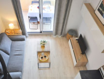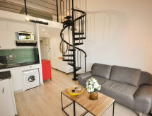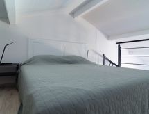2 -sobni apartman 24 m2 na 2 etaže na 1. katu, prema jugu. Potpuno renoviran, lijepo uređen: dnevni boravak s TV-om (plosnatim TV ekranom), klima uređajem. Izlaz na balkon. 1 mala soba s 1 krevetom na izvlačenje (2 x 80 cm, dužina 190 cm). Kuhinjska niša (2 staklokeramičke ploče za kuhanje, toster, kuhalo za vodu, mikrovalna pećnica, el. aparat za kavu). Tuš/WC. El. grijanje, bojlerom. Gornji kat: (kružne stepenice) s kosim stropom, otvorena galerija s 1 bračnim krevetom (140 cm, dužina 190 cm), ventilatorom. Balkon 6 m2, prema jugu. Balkonski namještaj. Djelomičan pogled na more i bazen. Na raspolaganju: perilica za rublje, glačalo, sušilo za kosu. Internet (wireless LAN [WLAN], uz doplatu). Parking br. 33 (ograđen, 1 automobil). Dodatna informacija: protupožarni alarm. Ponuda od strane fizičke osobe u skladu s člankom 155, IV, CGI.- Značajke smještaja