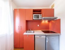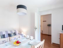 2 -sobni apartman 28 m2, u prizemlju. Prolazna soba s 1 x 2 kreveta na kat (90 cm, dužina 190 cm). Dnevni boravak/blagovaona s 1 kaučem za 2 osobe (1 x 140 cm, dužina 190 cm), TV-om i plosnatim TV ekranom. Izlaz na terasu. Kuhinjska niša (perilica za suđe, 4 Indukcione ploče, toster, kuhalo za vodu, mikrovalna pećnica, el. aparat za kavu). Tuš/WC. El. grijanje. Terasa. Garnitura za sjedenje. Na raspolaganju: glačalo, sušilo za kosu. Internet (wireless LAN [WLAN], uz doplatu). Parking uz kuću. Dodatna informacija: apartman za nepušače. TV samo FR. Protupožarni alarm.- postrojenja