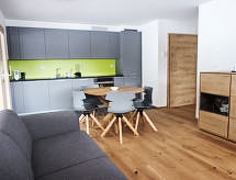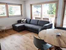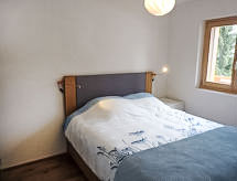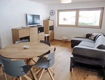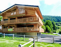 "Les Jardins d'Helene", 3 -sobni apartman 74 m2 na 1. katu, prema jugu. Objekt pogodan za 2 odraslih + 2 djece. Svrsishodno i moderno uređen: dnevni boravak/blagovaona s TV-om i plosnatim TV ekranom. Izlaz na balkon. 1 soba s 1 franc. krevetom (1 x 160 cm, dužina 200 cm). 1 dječja soba s 1 x 2 kreveta na kat (90 cm, dužina 190 cm). Otvorena kuhinja (4 staklokeramičke ploče za kuhanje, el. aparat za kavu, raclette roštilj, set za fondue (sir)). Izlaz na balkon. Tuš/WC. Veliki balkon 27 m2. Balkonski namještaj. Lijep pogled na planine. Na raspolaganju: sušilo za kosu. Internet (wireless LAN [WLAN], besplatan). Parking br. 4, garaža br. 4. Dodatna informacija: prikladno za obitelji. Apartman za nepušače.- postrojenja