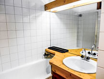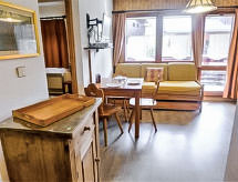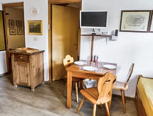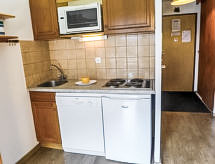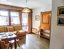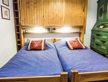 3 -sobni apartman 43 m2 na 1. katu. Dnevni boravak/blagovaona s TV-om. Izlaz na balkon. 1 soba s 2 kreveta (80 cm, dužina 190 cm). Izlaz na balkon. 1 soba s 2 kreveta (80 cm, dužina 190 cm). Kuhinjska niša (4 ploče za kuhanje, pećnica, perilica za suđe, kuhalo za vodu, el. aparat za kavu). Kada, odv. WC. El. grijanje. Balkon, prema jugoistoku. Vrlo lijep pogled na planine. Na raspolaganju: Internet (wireless LAN [WLAN], uz doplatu). Garaža br. 46 au sous sol. Dodatna informacija: TV samo FR. Protupožarni alarm.- Značajke smještaja