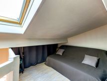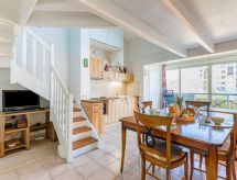 3 -sobni apartman na 2 nivoa 65 m2. Objekt pogodan za 2 odraslih + 2 djece. Veliki dnevni boravak/blagovaona 37 m2 s TV-om (plosnatim TV ekranom). Otvorena kuhinja (perilica za suđe, 4 staklokeramičke ploče za kuhanje, toster, mikrovalna pećnica, el. aparat za kavu). Tuš, odv. WC. Gornji kat: 1 soba s 1 franc. krevetom (140 cm, dužina 190 cm). 1 soba s 1 krevetom na izvlačenje (2 osobe 2 x 90 cm, dužina 190 cm). Na raspolaganju: perilica za rublje. Internet (wireless LAN [WLAN], besplatan). Parking br. 21. Dodatna informacija: apartman za nepušače. Protupožarni alarm.- Značajke smještaja